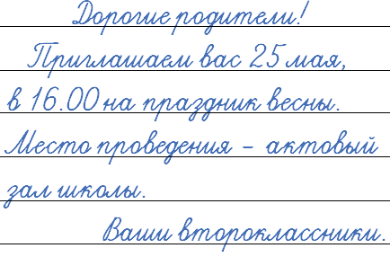 Напишите своим родителям приглашение на праздник весны и окончания второго класса.