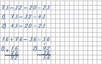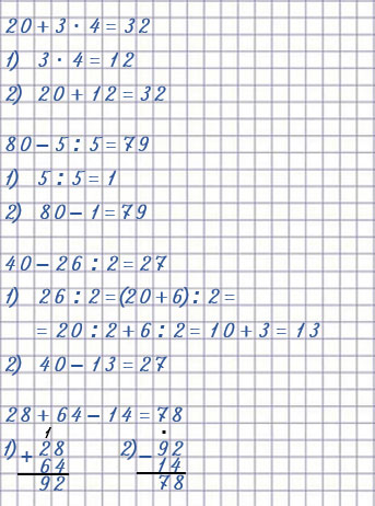 | 92 : 46 = 2 | 20 + 3 • 4 = 32 |