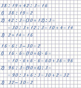 38 : 19 + 42 : 3 = 2 + 14 = 16 |