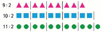 | 38 : 19 + 42 : 3 | (47 + 8) : 11 |