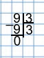 В 9 содержится 3 раза по 3. Ничего не остаётся. Остаток 0. |