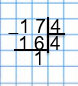 17 не делится на 4 без остатка. Вспомним, какое самое большое число до 17 делится на 4 без остатка. Это 16.