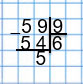 59 не делится на 9 без остатка. Вспомним, какое самое большое число до 59 делится на 9 без остатка. Это 54.