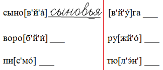Прочитайте. Запишите слова, заменяя в них звуковые обозначения слогов буквенными.