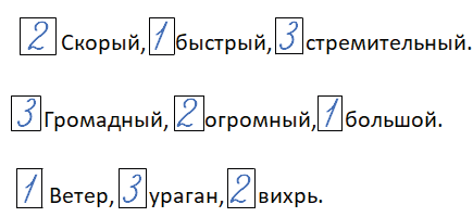 Прочитайте. Укажите цифрой, в каком порядке надо расположить синонимы по степени увеличения признака.