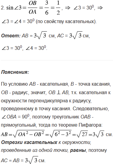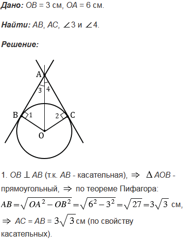 На рисунке 213 ОВ = 3 см, ОА = 6 см. Найдите АВ, АС,