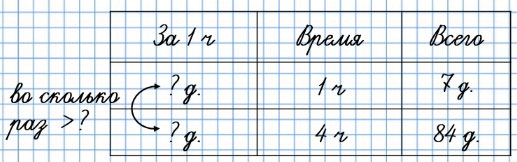39. За 1 ч рабочий изготавливает 7 деталей, а робот за 4 ч изготавливает 84 детали, поровну за каждый час. Во сколько раз выше производительность труда робота? Запиши решение задачи по действиям с краткими пояснениями.