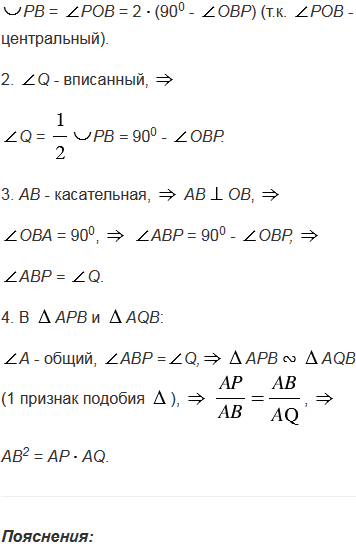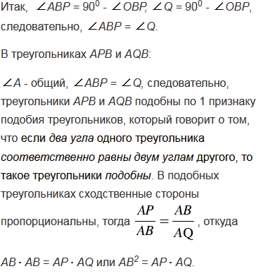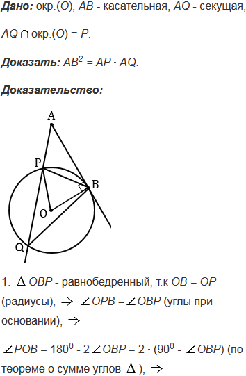 Через точку А проведены касательная АВ (В - точка касания) и секущая, которая пересекает окружность в точках Р и Q. Докажите, что АВ2 = АРАQ.