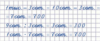 | 1 тыс. - 3 сот. | 9 сот. : 3 | 1 сот. • 7 |