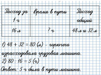 4. Грузовая машина расходует за 1 ч работы 15 л горючего. На сколько часов работы хватит 45 л горючего? 60 л? 90 л?