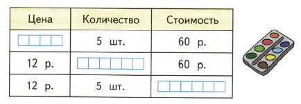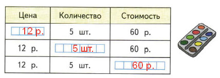 Марина купила 5 коробок красок по 12 р. за каждую. Сколько рублей она заплатила за покупку?