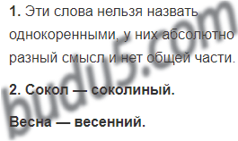 У однокоренных слов близкий смысл и есть общая часть - корень.