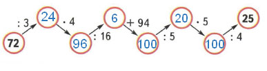 72 : 3 = 24             24 • 4 = 96               96 : 16 = 6