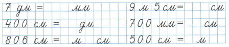 Повтори, сколько сантиметров в одном дециметре, сколько миллиметров в одном сантиметре, сколько дециметров в одном метре.