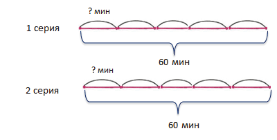 53. Продолжительность одной серии мультфильма составляет пятую часть часа. Сколько минут продолжаются две серии?