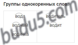В учебнике дана подсказка, как выполнить задание: нужно найти две группы однокоренных слов (близких по смыслу и с общим корнем).