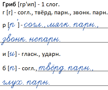 Прочитайте. Закончите звуко-буквенный разбор слова гриб.