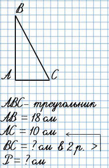 1) 18 : 2 = 9 (см) длина стороны ВС.