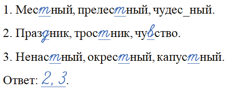 Укажите номера строчек, где во всех словах на месте пропуска нужно вставить букву. Ответ проверьте в конце рабочей тетради.