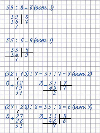 59 : 8 = 7 (ост. 6) 55 : 6 = 9 (ост. 1)