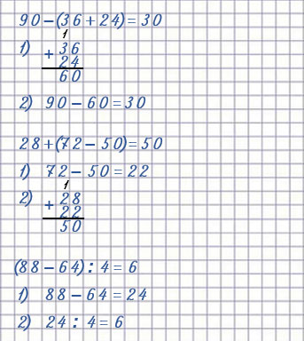 90 - (36 + 24) = 30 (88 - 64) : 4 = 6