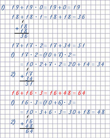 17. Рассмотри, как составлены выражения в каждом столбике, и продолжи столбики. Выполни вычисления.