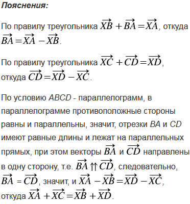 Дан параллелограмм АВСD. Докажите, что , где Х - произвольная точка плоскости.