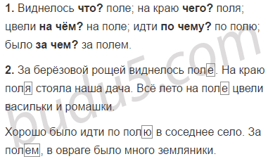 1. Прочитай. С какими словами в предложениях связано слово поле и на какие вопросы оно отвечает. Спиши текст.
