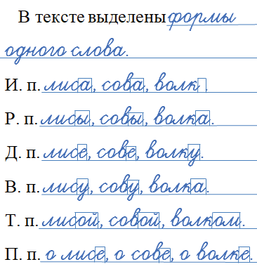 В тексте выделены формы одного слова.