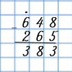 Теперь мы знаем, что одно из слагаемых - 265, а другое - 383. Найдём их разность: