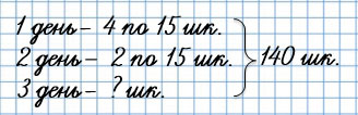 4. За три дня Музей космонавтики посетили 140 школьников. В первый день было проведено 4 экскурсии по 15 человек, во второй - 2 такие экскурсии. Составь разные выражения, используя эти данные, и объясни, что они означают.