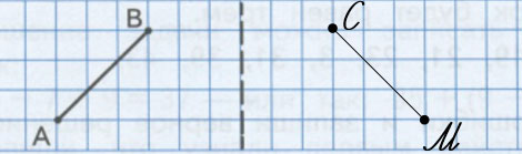 86. Начерти отрезок, симметричный отрезку АВ относительно начерченной оси симметрии.