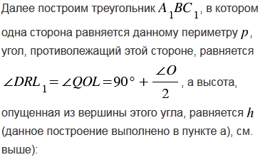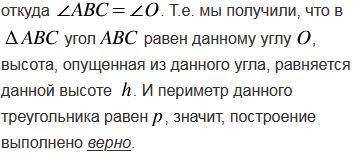 б) по углу, высоте, проведённой из вершины данного угла, и периметру.