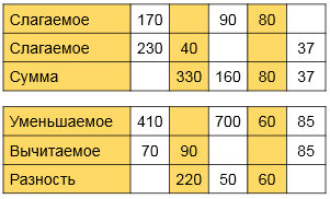 | Уменьшаемое | 410 | 310 | 700 | 60 | 85 |