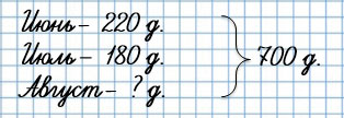 20. В загородном лагере за 3 летних месяца отдохнуло 700 ребят. Из них в июне - 220 человек, а в июле - 180. Поставь вопрос и реши задачу.