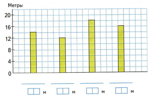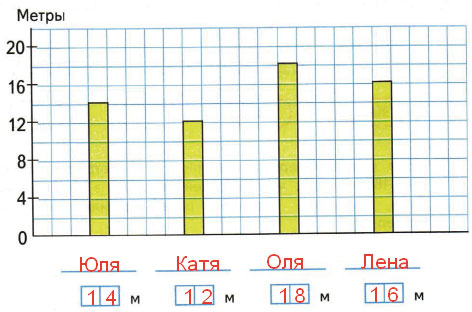 По диаграмме мы можем определить результаты девочек - 14, 12, 18 и 16 м.