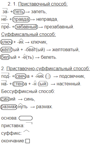 1. Текст разделён на две части, потому что можно выделить две микротемы: 1-я: приставочный и суффиксальный способы словообразования; 2-я: другие способы словообразования.