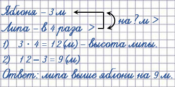 1) Высота яблони 3 м, а липы в 4 раза больше.