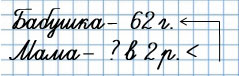 2) Бабушке 62 года, а мама в 2 раза моложе.