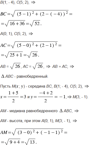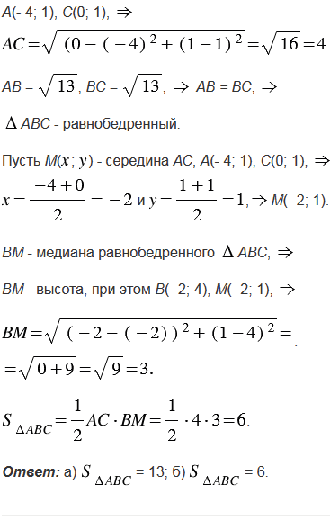 Докажите, что треугольник АВС равнобедренный, и найдите его площадь, если вершины треугольника имеют координаты: