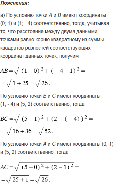а) А(0; 1), В(1; - 4), С(5; 2);