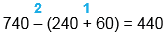 740 - (240 + 60) = 440