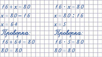 = 80 неизвестно слагаемое, находится вычитанием, в уравнении 16 •