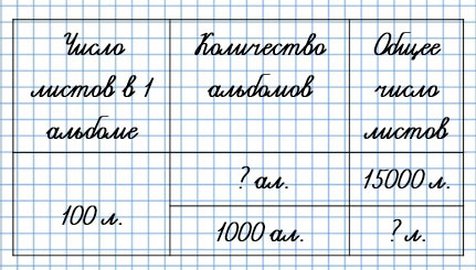 128. В альбоме 100 листов. Сколько таких альбомов получится из 15 000 листов? Сколько листов в 1 000 таких альбомов?