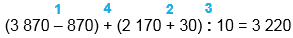 (3 870 - 870) + (2 170 + 30) : 10 = 3 220