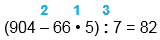 (904 - 66 • 5) : 7 = 82