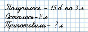 150. Приготовленный из ягод сок разлили в банки. Получилось 15 банок, по 3 л в каждой, и ещё осталось 2 л сока. Сколько литров сока приготовили?