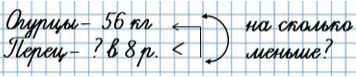186. На своём приусадебном участке семья вырастила 56 кг огурцов, а перца - в 8 раз меньше, чем огурцов. На сколько килограммов перца было меньше, чем огурцов?