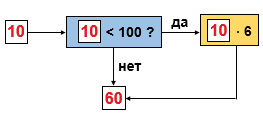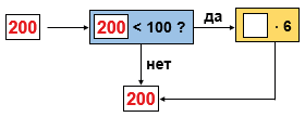 Если поступающее на входе число меньше 100, то нужно умножить его на 6.