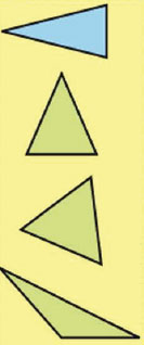 1) треугольник № 1 (нумерация сверху вниз), так как он голубой, а остальные треугольники - зелёные;